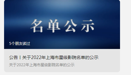 公告丨关于2022年上海市星级影院名单的公示2023-03-11